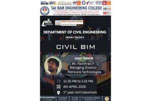 Organized by the Department of Civil Engineering, Sai Ram Engineering College in association with Indian Concrete Institute – Chennai Centre.